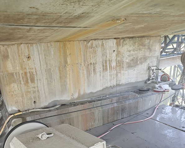 3、切割拆除:對支撐梁進(jìn)行支撐,使用切割方法對梁體進(jìn)行切割分塊,使用吊機(jī)吊到基坑邊破碎或運(yùn)到指定地點(diǎn)再進(jìn)行破碎回收鋼筋。使用切割拆除zui大的局限在于基坑周邊能擺放大型吊機(jī)。優(yōu)點(diǎn)是施工速度很快、使用趕工期的項(xiàng)目、能擺放大型吊機(jī)的情況下造價(jià)相對較低;缺點(diǎn)是對場地要求較高(需有擺放吊機(jī)的位置)、運(yùn)輸困難費(fèi)用高(如不能現(xiàn)場堆放及破碎)。