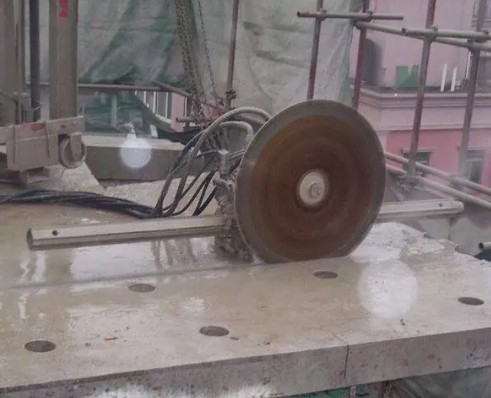 繩鋸切開。發(fā)動開端按鈕,調(diào)整自動輪提高張力,確保金剛石繩子恰當繃緊,供給冷卻水,再發(fā)動驅(qū)動自動輪,帶動金剛石繩子反轉(zhuǎn)切開。吊裝及破碎。切開完結(jié)后,全體將混凝土構(gòu)件吊裝到指定的場所破碎,并及時清運出施工現(xiàn)場。